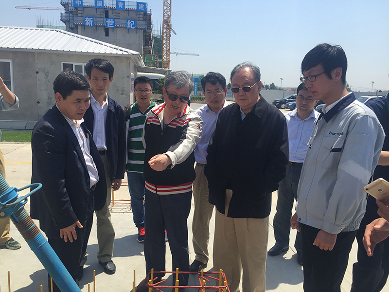 In the morning of May 17, the former vice minister of Ministry of Construction Zheng Yijun, the former deputy mayor of Qingdao city Li Naisheng and the secretary general of the China Construction Industry Association Wu Tao and other leaders visited the fabricated residential project of the Hanwa community constructed by CNQC.