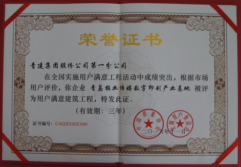 The projects named “Chinese-customer-satisfied projects” at this conference include: Qingdao newspaper media digital printing industry base, Qingdao gas heating emergency repair center, the multi-functional building in the new business factory of Qingdao Vehicle Management Station, and Qingdao national advertisement cultural industry park.
