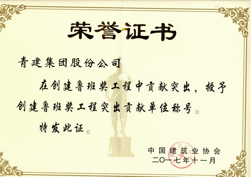 Awarded “Outstanding Contribution Unit for Creating Luban Prize for Construction Project”