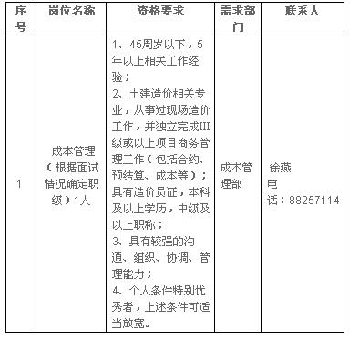關(guān)于青島建設(shè)集團有限公司成本管理部部分崗位的招聘公告