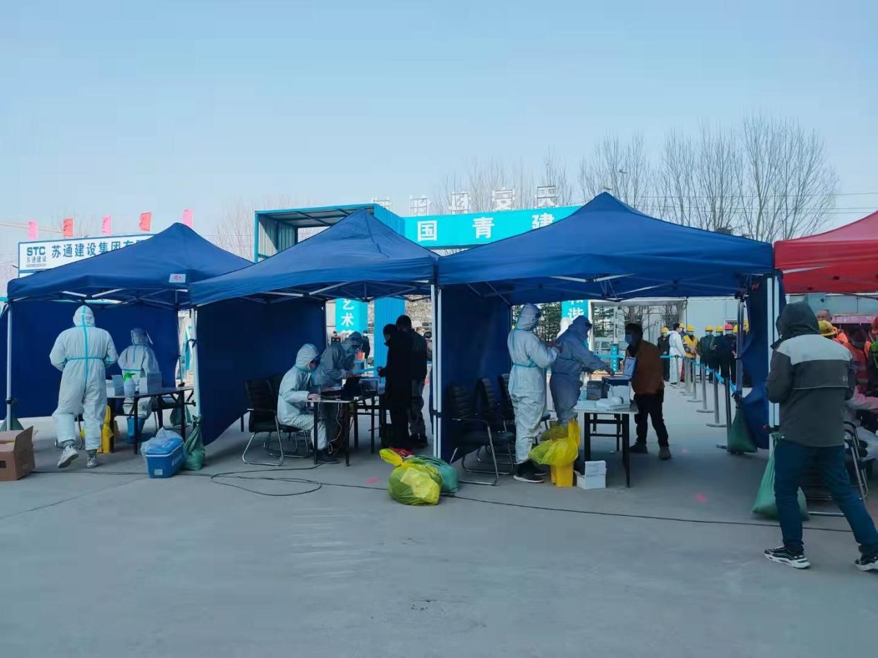 3月9日,集團(tuán)青島天安科創(chuàng)城一期產(chǎn)業(yè)項(xiàng)目部主動(dòng)承擔(dān)周邊十個(gè)建筑工地及部分社區(qū)企業(yè)職工的核酸檢測任務(wù),負(fù)責(zé)維持秩序、登記錄入、消毒殺菌、應(yīng)急保障等工作。從早上六點(diǎn)到下午六點(diǎn),經(jīng)過十二個(gè)小時(shí)緊鑼密鼓的高效工作,順利完成了核酸檢測任務(wù)。3月12日下午又緊急承擔(dān)第二輪核酸檢測任務(wù),3月15日組織第三輪核酸檢測,三次累計(jì)檢測4300余人次。