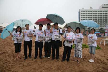 7月18日上午,青建集團(tuán)組織志愿者在第一海水浴場(chǎng)參加了由青島市紅十字會(huì)和《青島早報(bào)》聯(lián)合主辦的微塵報(bào)紙義賣(mài)大型公益活動(dòng),大家冒著大雨準(zhǔn)時(shí)來(lái)到活動(dòng)地點(diǎn),為支持社會(huì)公益事業(yè)和弘揚(yáng)微塵精神奉獻(xiàn)一份力量。