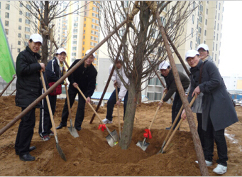 在飄揚的團旗下,青年團員們50多人手持鐵鏟、水桶,在綠化公司同事的指導下,填土、澆水……爭先恐后,一絲不茍,一片熱火朝天的景象。那一株株樹苗、一鍬鍬沃土,蘊含的是廣大團員對綠化建設(shè)的深情祝愿和美好寄托。通過大家的努力,30余棵3米多高的樹給我們的橄欖城項目平添了許多綠意。