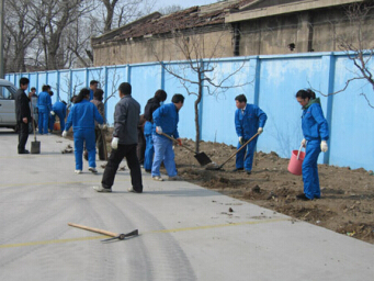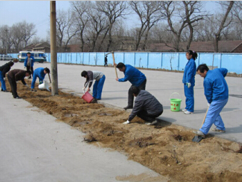 公司購買了大量的月季花苗和小松樹并提前規(guī)劃了公司現(xiàn)場(chǎng)的花壇位置。職工們自由組合,有的負(fù)責(zé)挖坑刨土,有的負(fù)責(zé)提桶澆水,大家配合默契,揮汗如雨,整個(gè)“工地”笑聲不斷。4個(gè)小時(shí)過去了,共種下300余棵月季花苗。