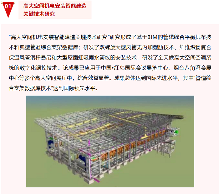 與會(huì)院士、專家認(rèn)真聽取了課題組成員對(duì)科技成果項(xiàng)目背景、創(chuàng)新點(diǎn)及技術(shù)內(nèi)容、知識(shí)產(chǎn)權(quán)情況、經(jīng)濟(jì)社會(huì)效益及應(yīng)用前景等四個(gè)方面的匯報(bào),仔細(xì)審閱了評(píng)價(jià)資料,并就相關(guān)細(xì)節(jié)和應(yīng)用情況進(jìn)行了評(píng)估和問詢。專家組經(jīng)綜合評(píng)價(jià),一致認(rèn)為:“高大空間機(jī)電安裝智能建造關(guān)鍵技術(shù)研究”成果總體達(dá)到國際先進(jìn)水平,其中“管道綜合支架數(shù)據(jù)庫技術(shù)”達(dá)到國際領(lǐng)先水平;“高空大跨復(fù)雜造型鋼桁架結(jié)構(gòu)關(guān)鍵建造技術(shù)研究與應(yīng)用”、“超大云浪造型金屬屋面體系關(guān)鍵技術(shù)研究與應(yīng)用”、“腐蝕驅(qū)動(dòng)智能纖維的研發(fā)及修復(fù)裂縫機(jī)理研究”3項(xiàng)科技成果總體達(dá)到國際先進(jìn)水平,為集團(tuán)科技品牌打造和創(chuàng)新發(fā)展再添新動(dòng)力。