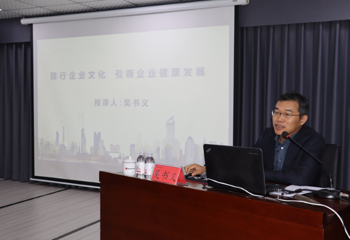 吳總首先從當(dāng)前經(jīng)濟(jì)形勢(shì)分析入手,指出面臨嚴(yán)峻的經(jīng)營環(huán)境,企業(yè)文化建設(shè)尤為重要,企業(yè)文化是企業(yè)發(fā)展最重要的軟實(shí)力?;仡櫦瘓F(tuán)72年的發(fā)展歷程,企業(yè)文化經(jīng)歷了不同階段的沉淀積累、踐行創(chuàng)新,最終形成了集團(tuán)獨(dú)具特色的企業(yè)使命、愿景和核心價(jià)值觀。為更好地闡釋企業(yè)文化,吳總分別從黨建文化、誠信文化、擔(dān)當(dāng)文化、質(zhì)量文化、安全文化、科技文化、創(chuàng)新文化、海外文化、生態(tài)文化、人才文化、廉潔文化、人文文化等12個(gè)方面,結(jié)合自身職業(yè)經(jīng)歷,深入淺出地對(duì)集團(tuán)文化進(jìn)行了細(xì)致梳理和系統(tǒng)總結(jié)。