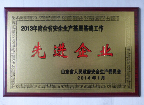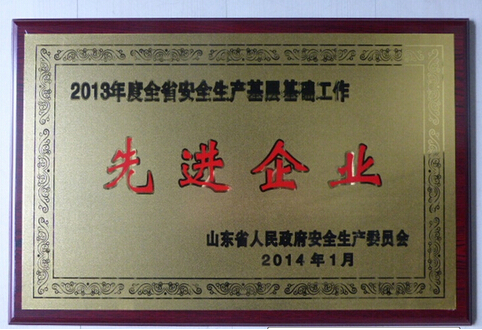 公司榮獲“2013年度山東省安全生產(chǎn)基層基礎(chǔ)工作先進企業(yè)
